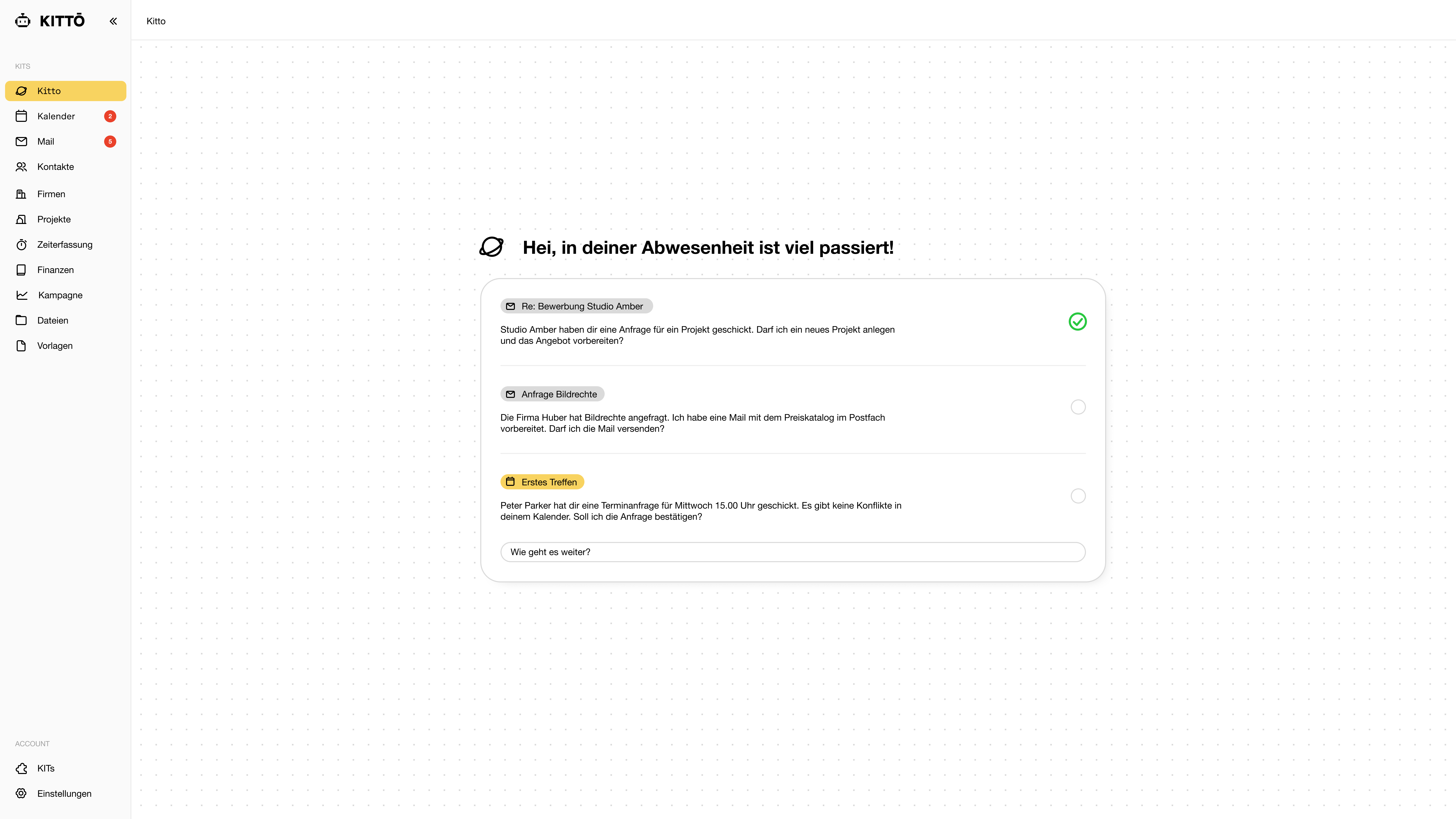 KITTO understands email, projects, and contacts in context — as intuitively as you do.
